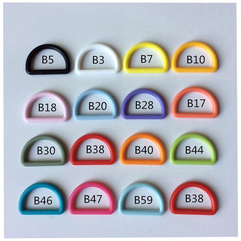 Brand: KAM Hualian D-type ring Specification: 20MM, 25MM (maximum width of the fabric through which the belt is worn) Material: POM (environmental friendly, pass needle inspection) Weight per unit: 0.15g Packing: 200 pieces/pack Color: 16 colors (as shown in the figure below) Tension value: 10-30KG Usage: DIY crafts, sports bags, shoulder bags, hiking bags, shoulder adjustment buckles, etc. Stocked in 16 colors, other colors can be customized (minimum order quantity of 5,000 pieces per color). |