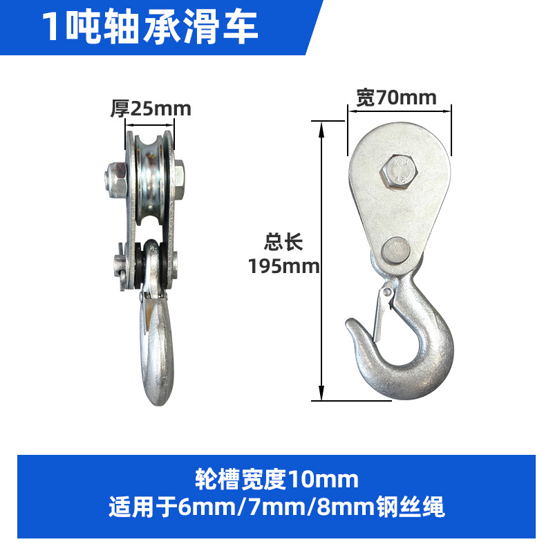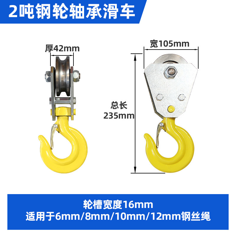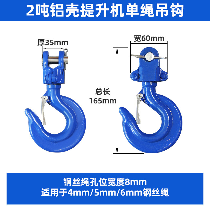 2 t aluminum case hoist single rope hook