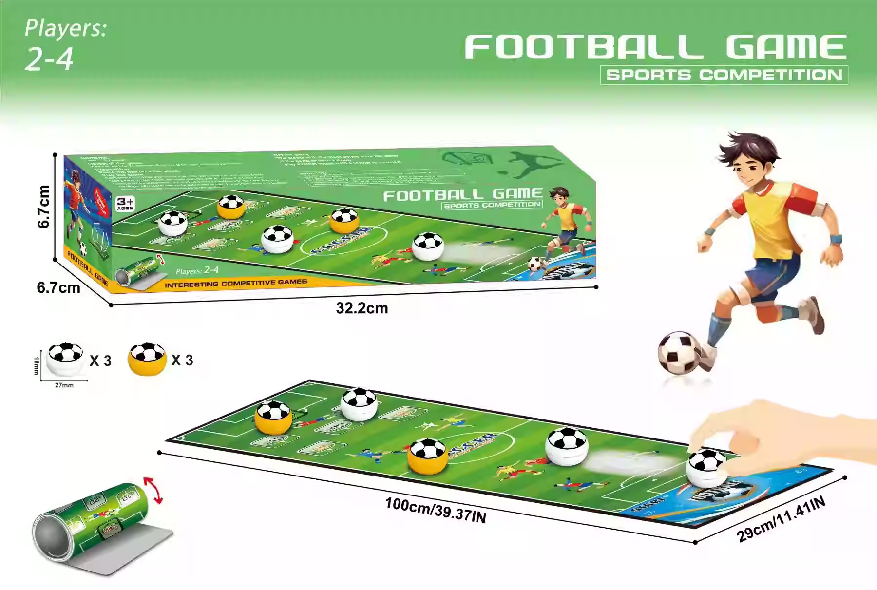 [english color box] table football-6 balls (1m long)