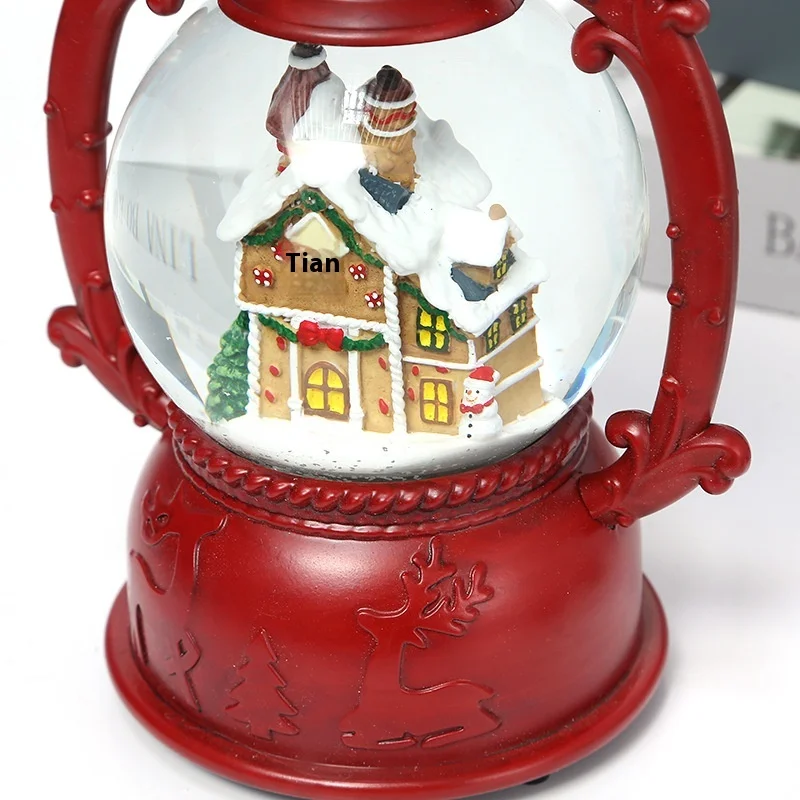 Direct Factory Sale In-Stock Christmas Decorations Automatic Snowfall Lantern Light Music Resin Ornaments Gift Cottage Ornament