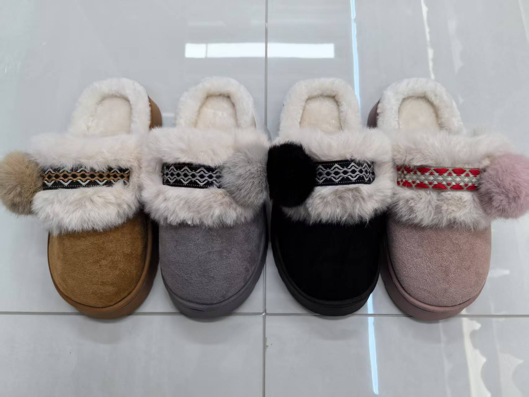 2025 new autumn and winter fur ball ethnic style webbing children slippers warm and comfortable winter essential foreign trade export wholesale 中文版
