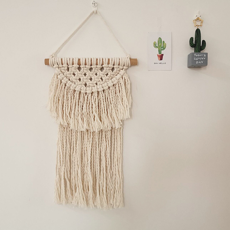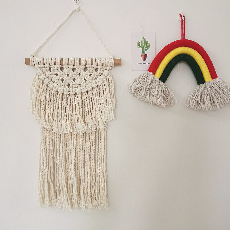 | Material + Accessories | Cotton rope + high-quality imported beech wood with invisible hooks (not suitable for tile or glass walls). |