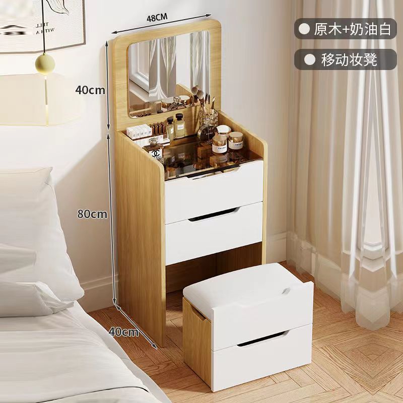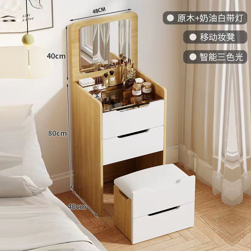 48cm log + cream white + with light + hidden dressing stool + flip mirror