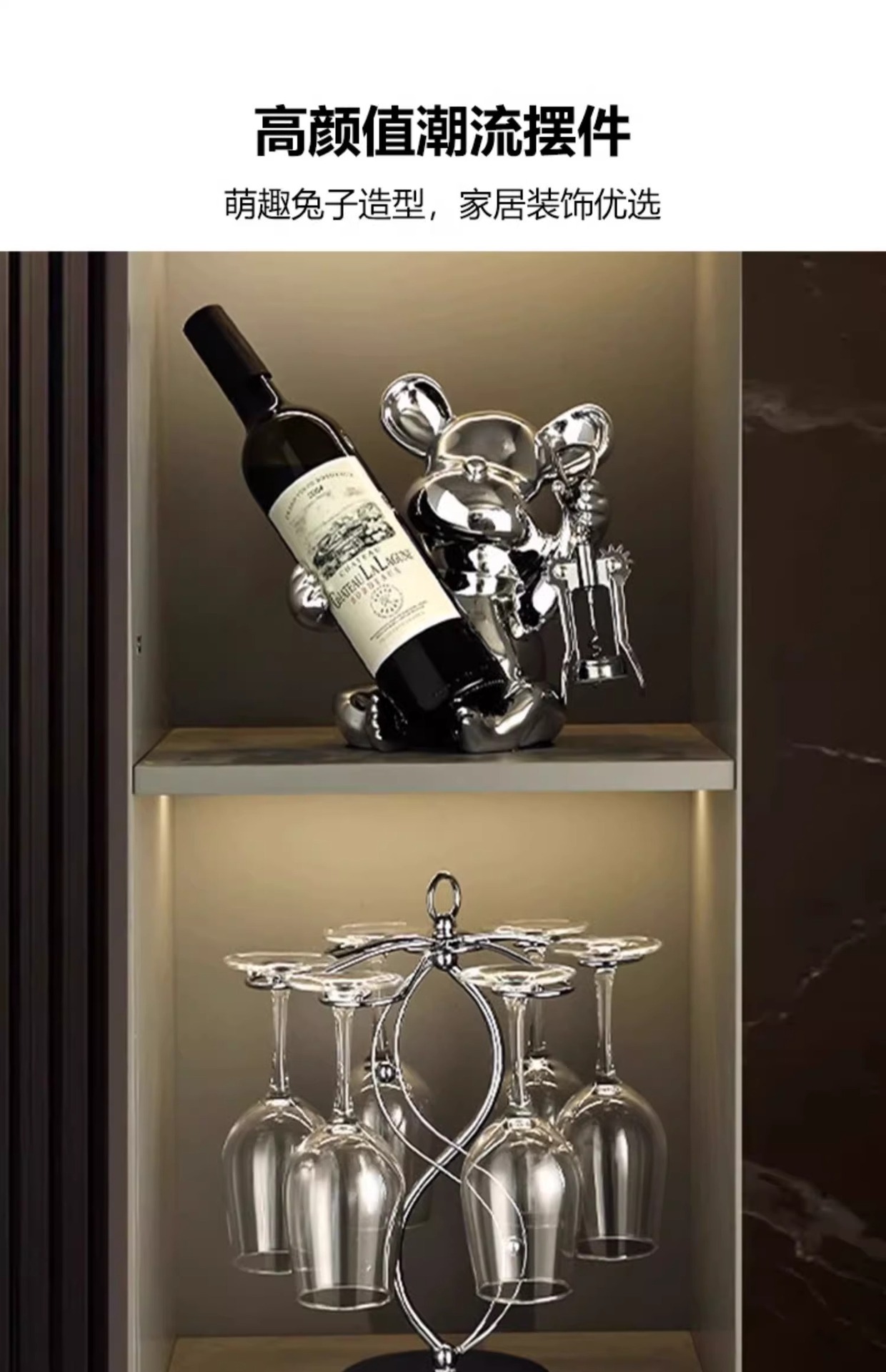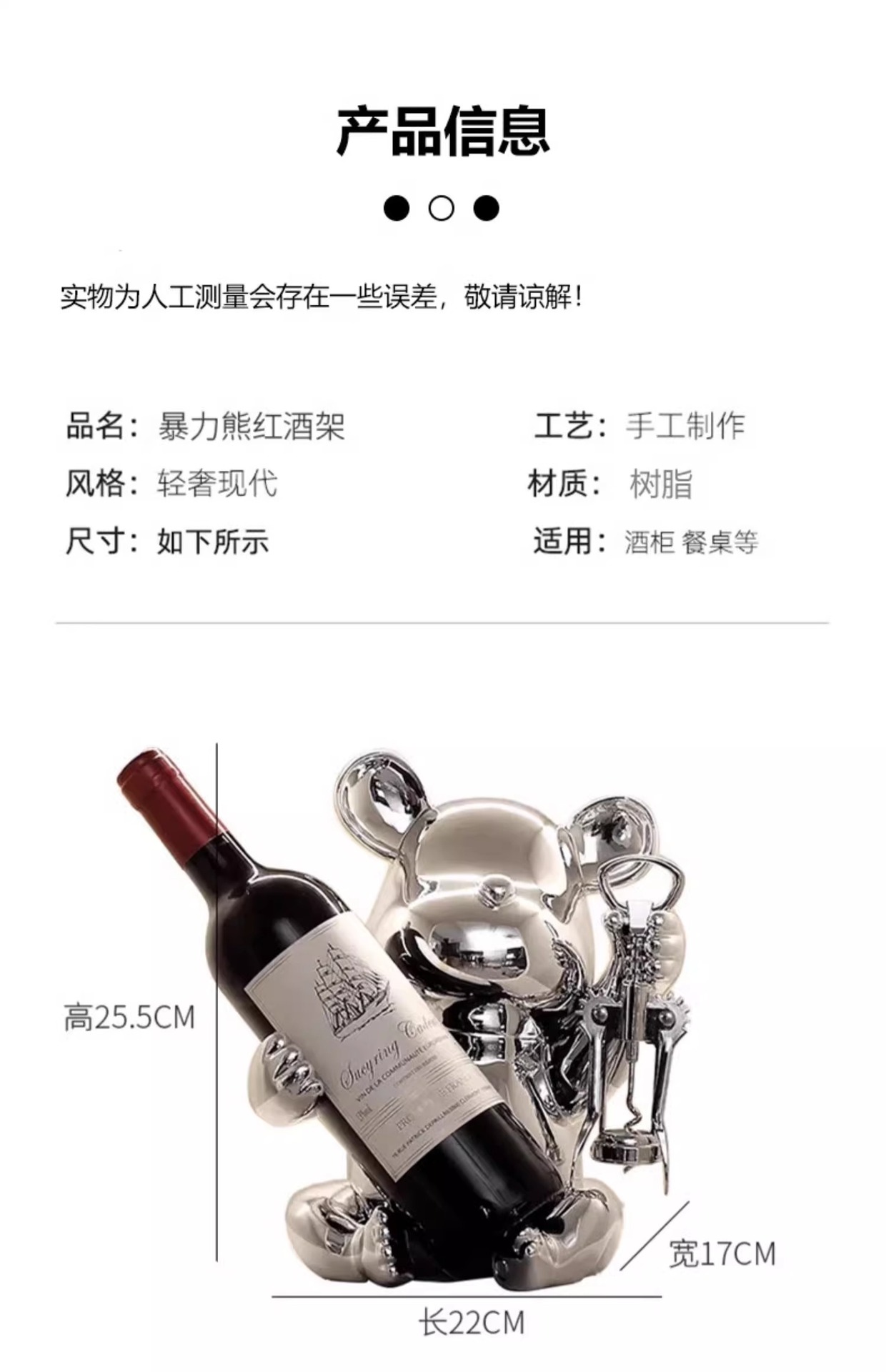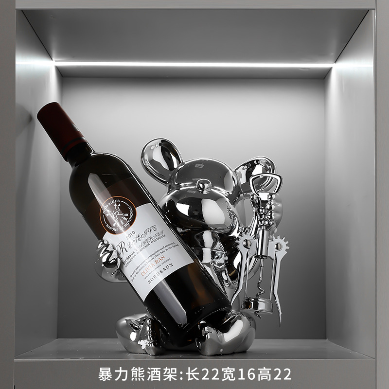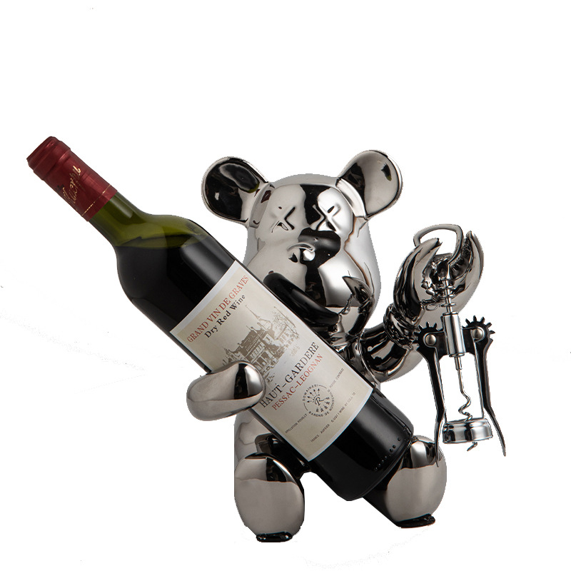 bear wine rack [silver] free bottle opener