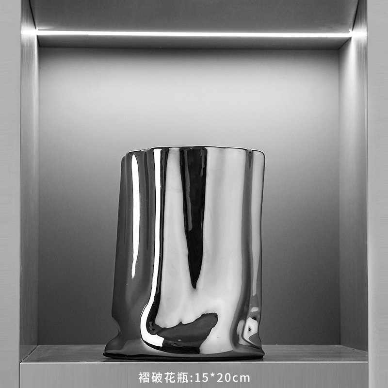 pleated silver electroplated ceramic vase