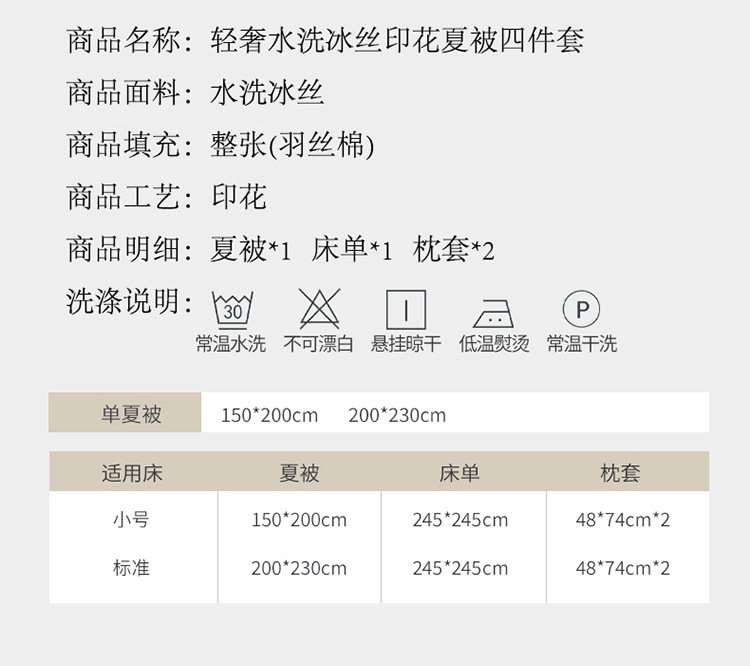 | 200*230 summer quilt four-piece set | CN¥ 90.06 | 99976 piece available |