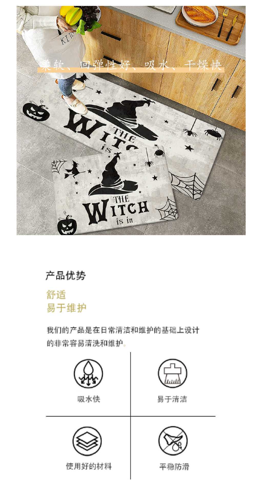 horror witch floor mat flannel floor mat non-slip mat kitchen pad foot mat