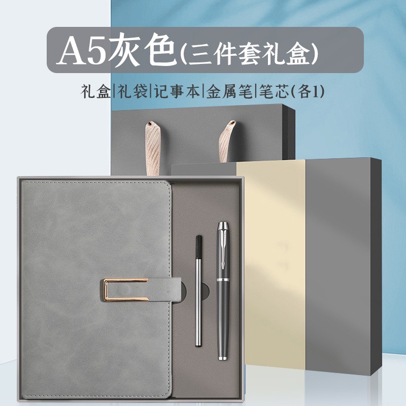 u-shaped buckle-2-piece set-gray [notebook + pen + gift box]]