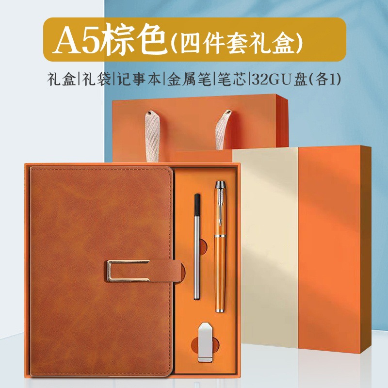 u-shaped buckle-4 suit-brown eva [notebook + metal pen + refill + u disk]]
