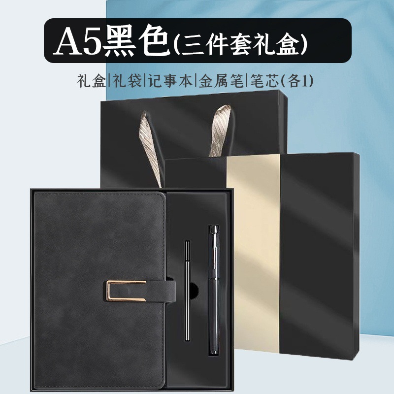 u-shaped buckle-2-piece set-black [notebook + pen + gift box]]