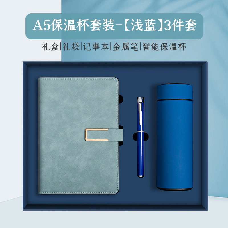 light blue vacuum cup set-[notebook + metal pen + thermos cup + gift bag]]