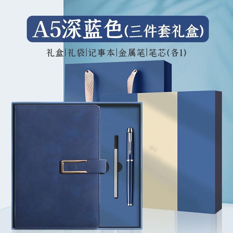 u-shaped buckle-2-piece set-dark blue [notebook + pen + gift box]]