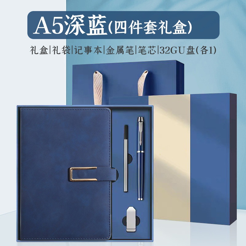 u-shaped buckle-4 suit-dark blue eva [notebook + metal pen + refill + u disk]]