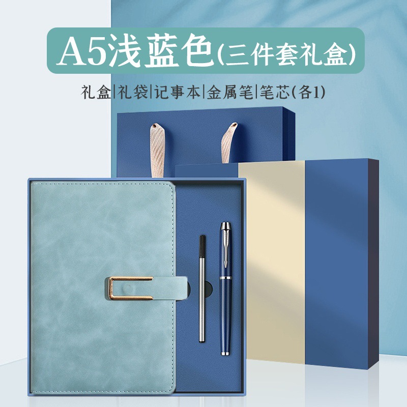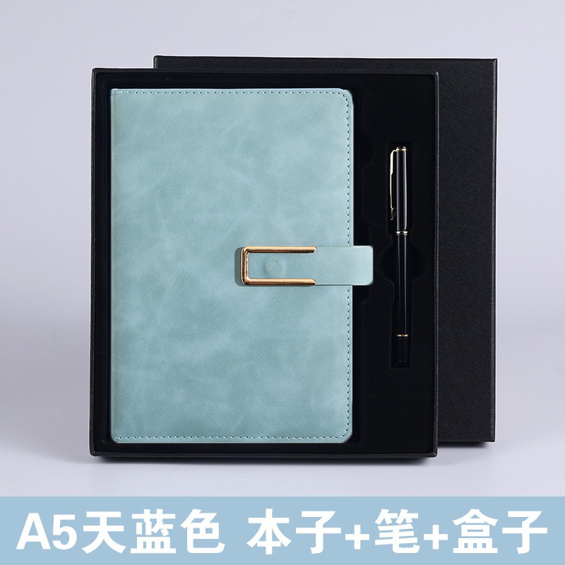 u-shaped buckle-2-piece set-light blue [notebook + pen + gift box]]