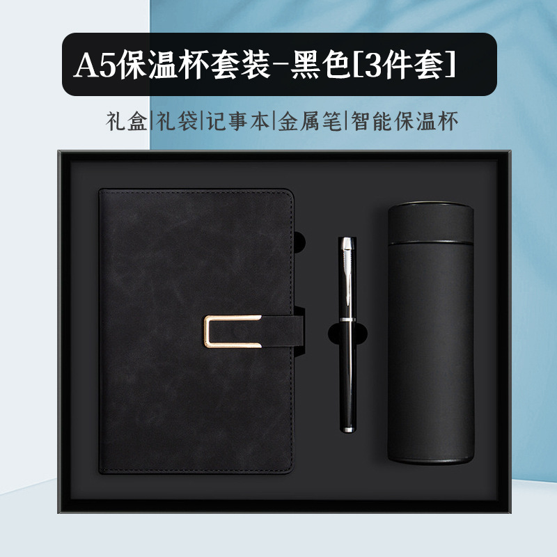 black vacuum cup set-[notebook + metal pen + thermos cup + gift bag]]