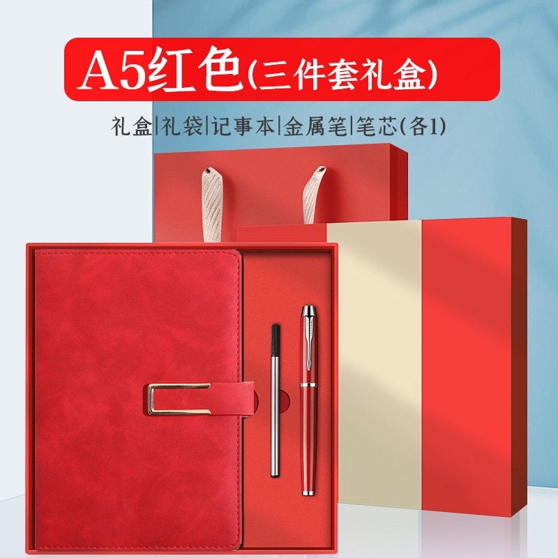 u-shaped buckle-2-piece set-red [notebook + pen + gift box]]