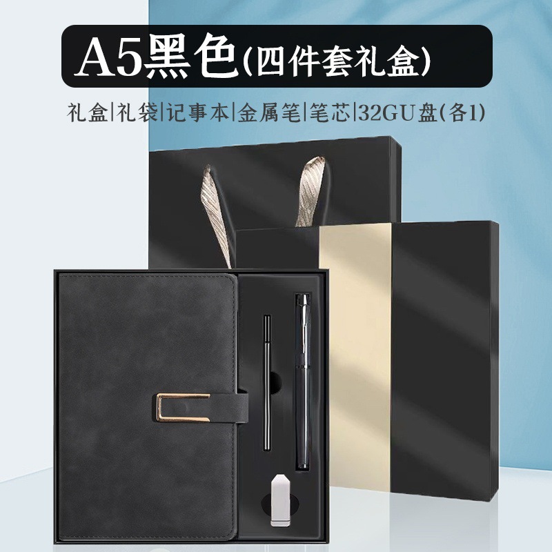 u-shaped buckle-4 suit-black eva [notebook + metal pen + refill + u disk]]