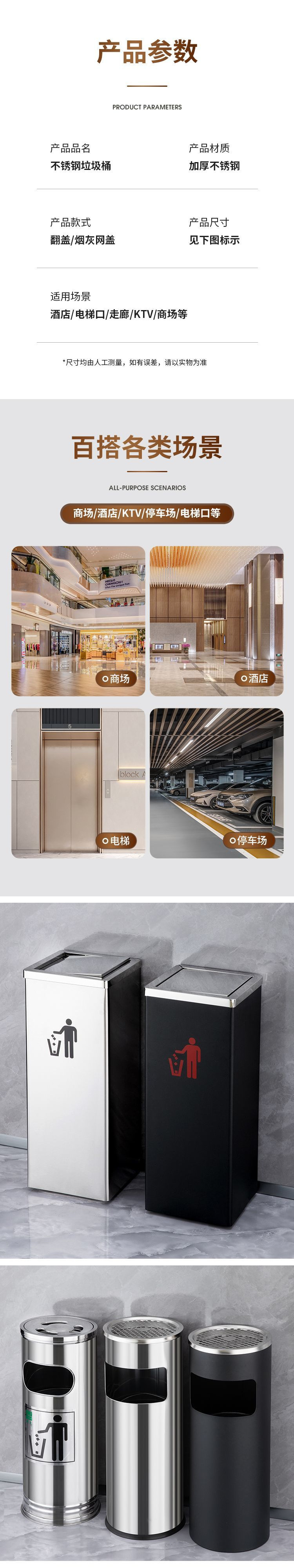 thickened black paint trash can side open