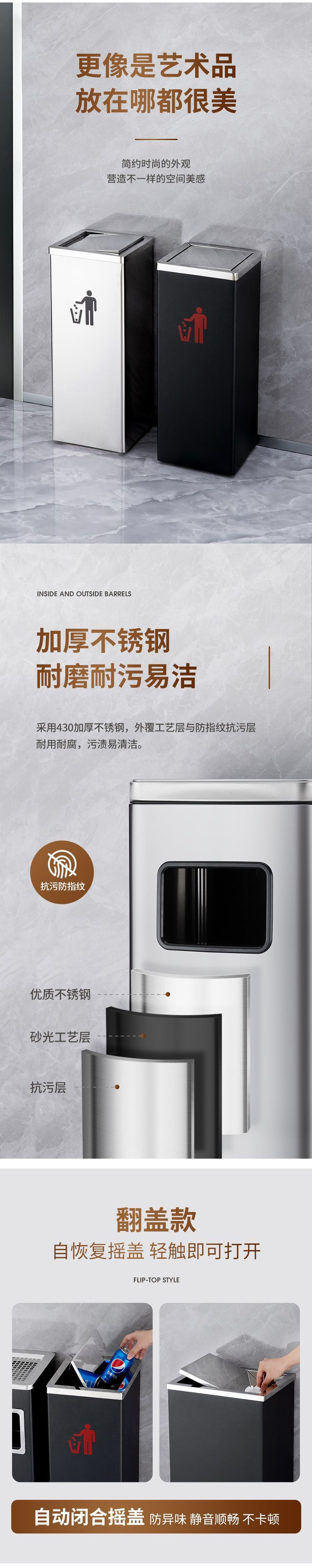 square stainless steel flip
