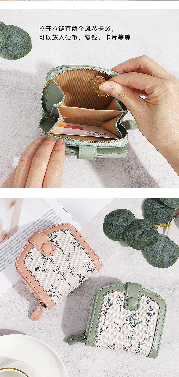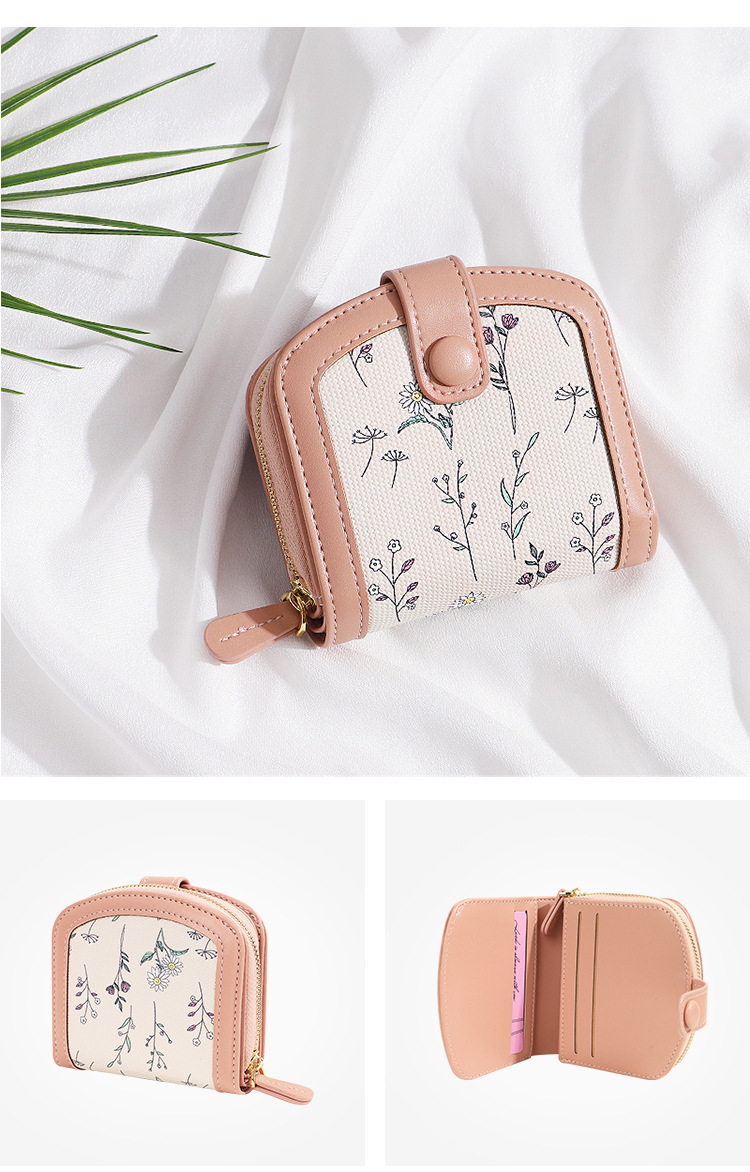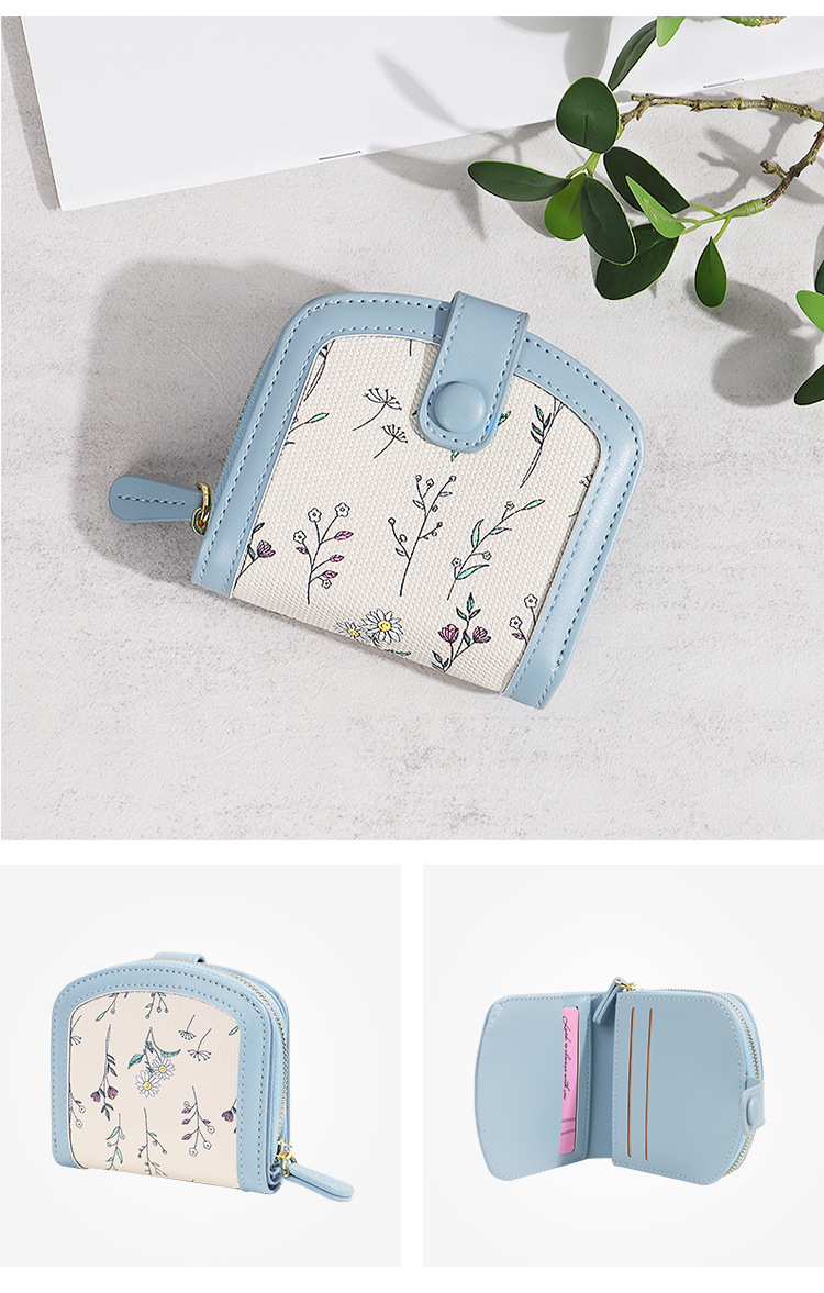 printed women's coin purse pu simple cute card holder zipper student sweet short wallet women's high sense
