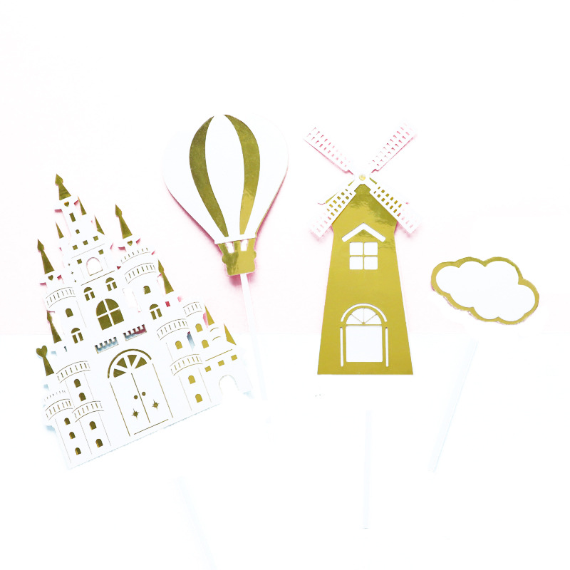 copyright baking cake ornaments birthday decoration princess prince castle balloon cloud inserts hanging flag plug-in