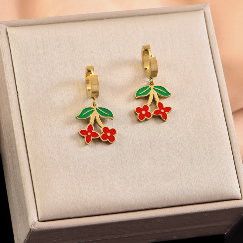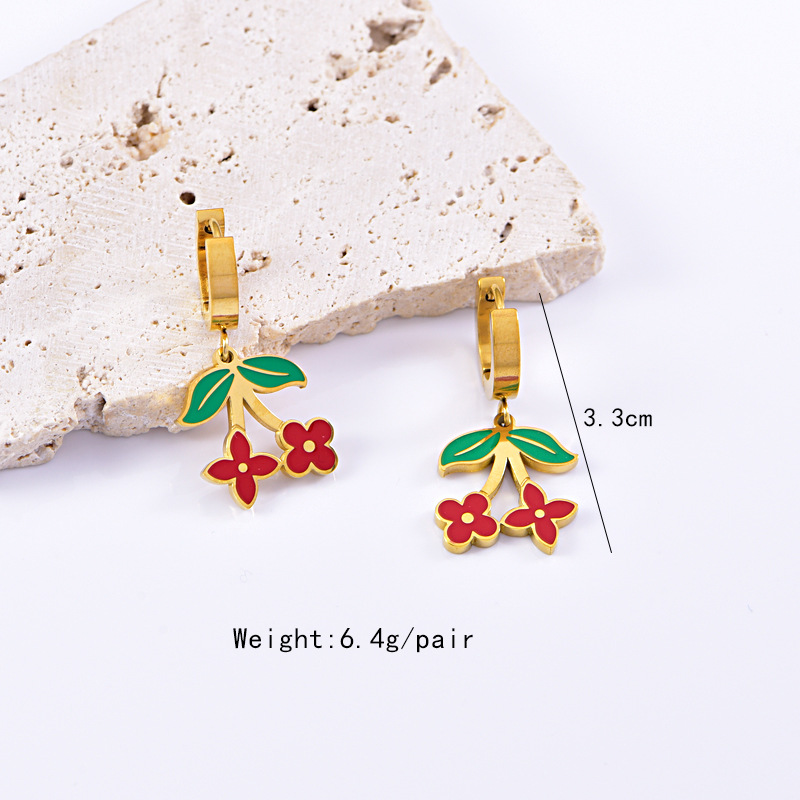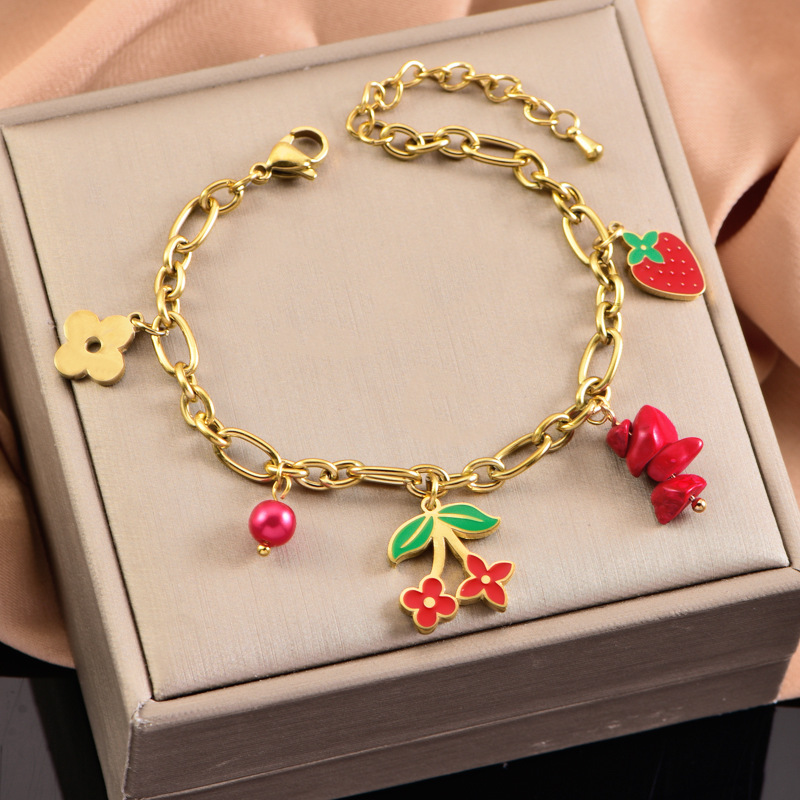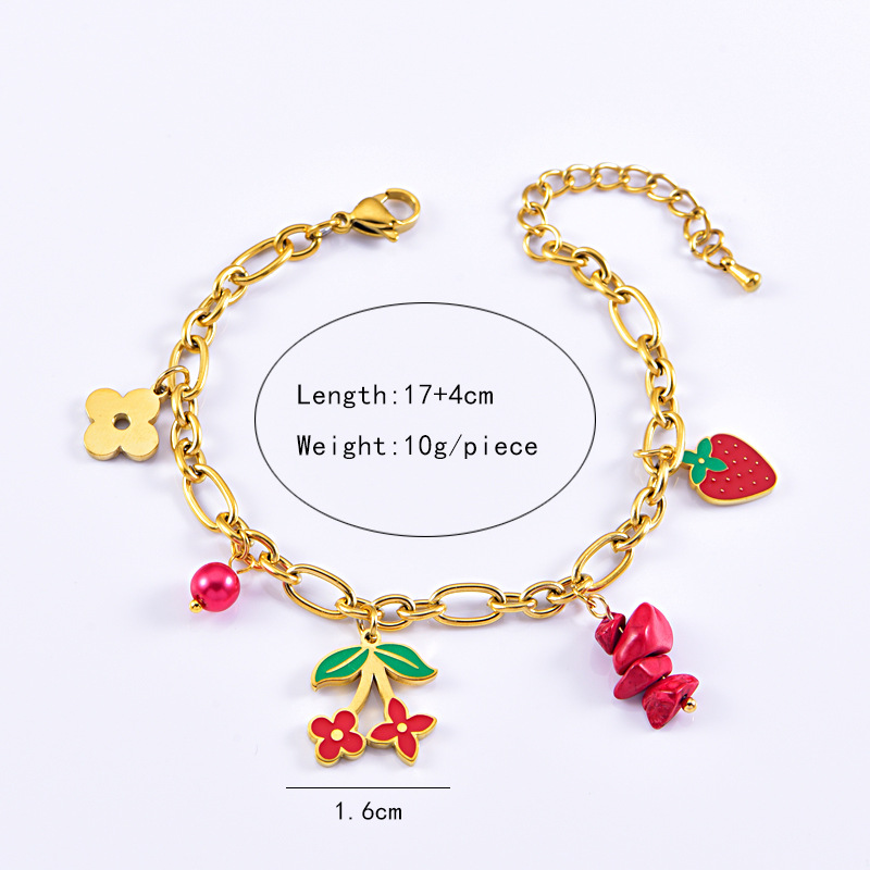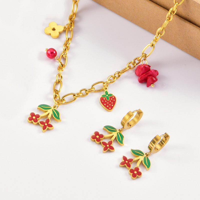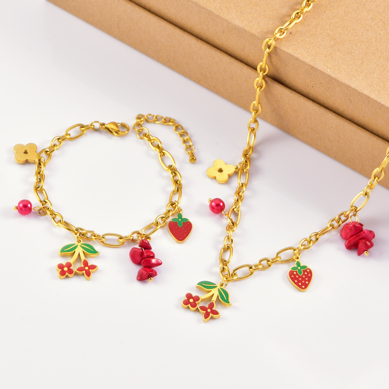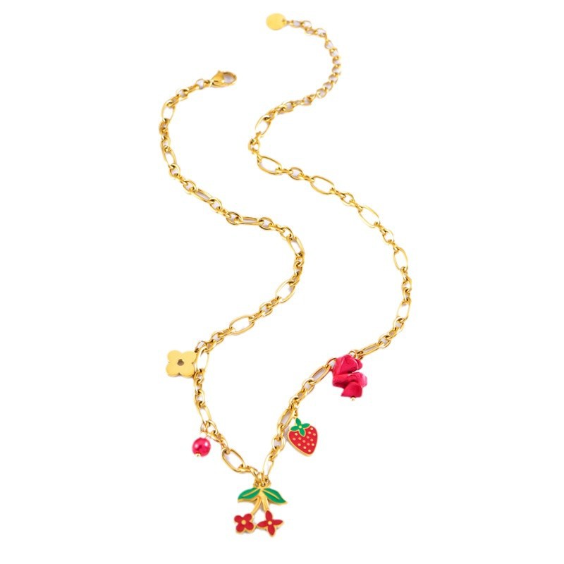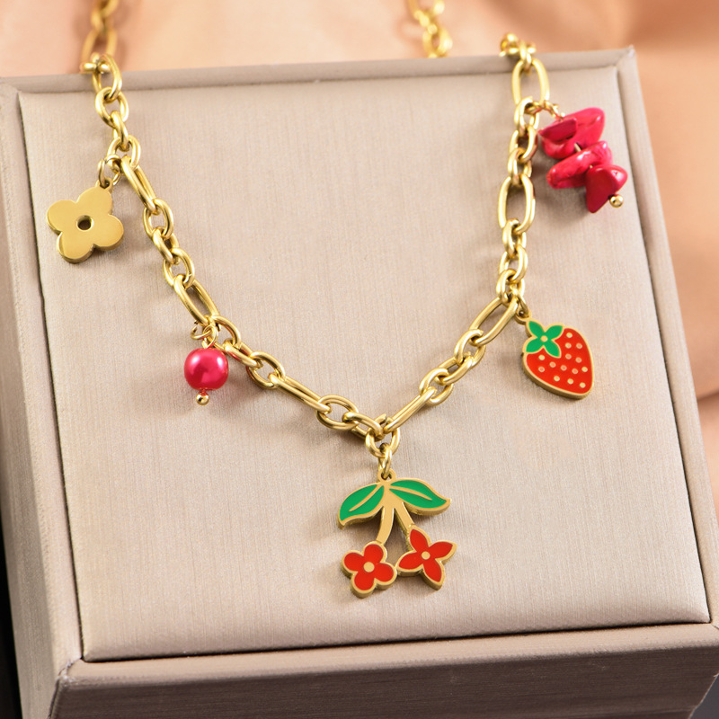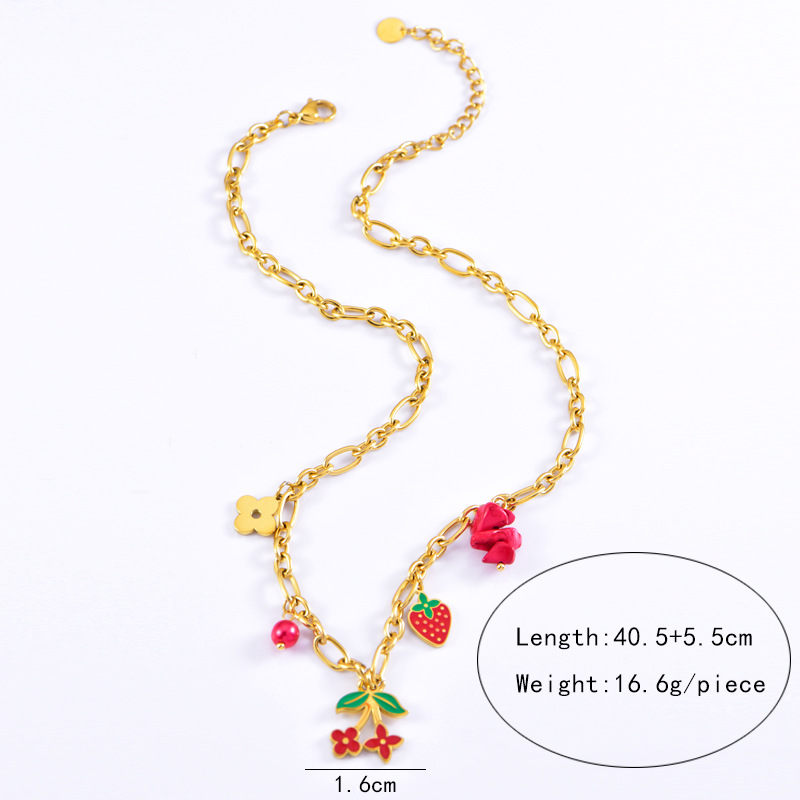 sweet personality titanium steel necklace red dripping strawberry necklace leaves flowers stainless steel bracelet