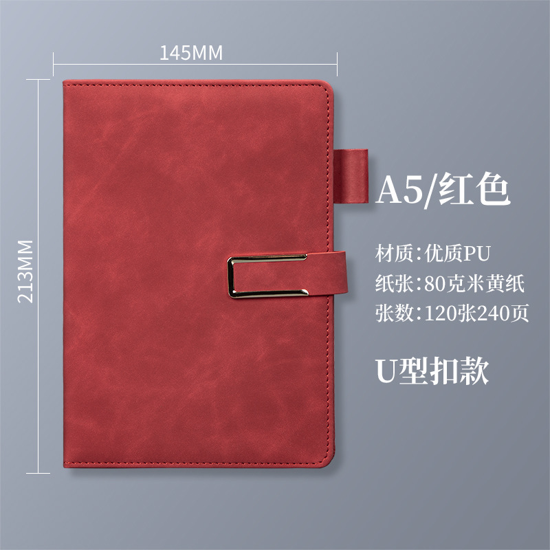 a5 red-240 pages (u-shaped buckle + penholder)