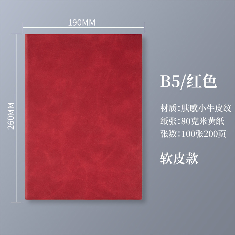 b5 red-200 pages (no buckle + soft leather)