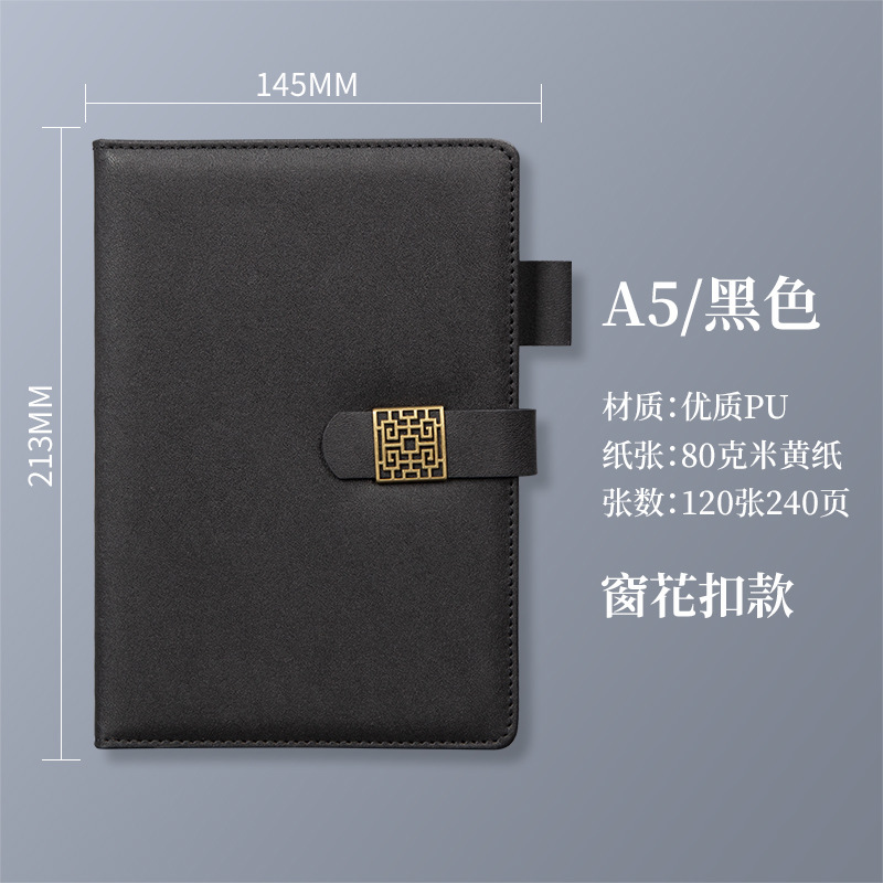 a5 black-240 pages (glossy buckle + penholder)