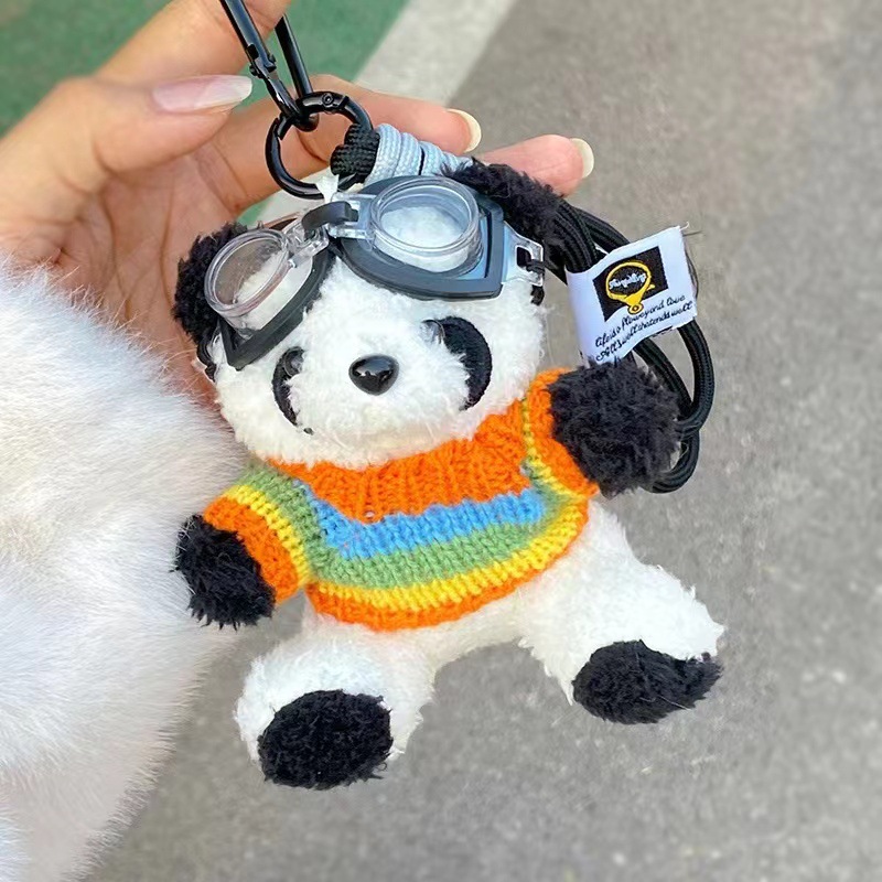 white pilot panda [three-color colorful sweater + string clip + glasses]]