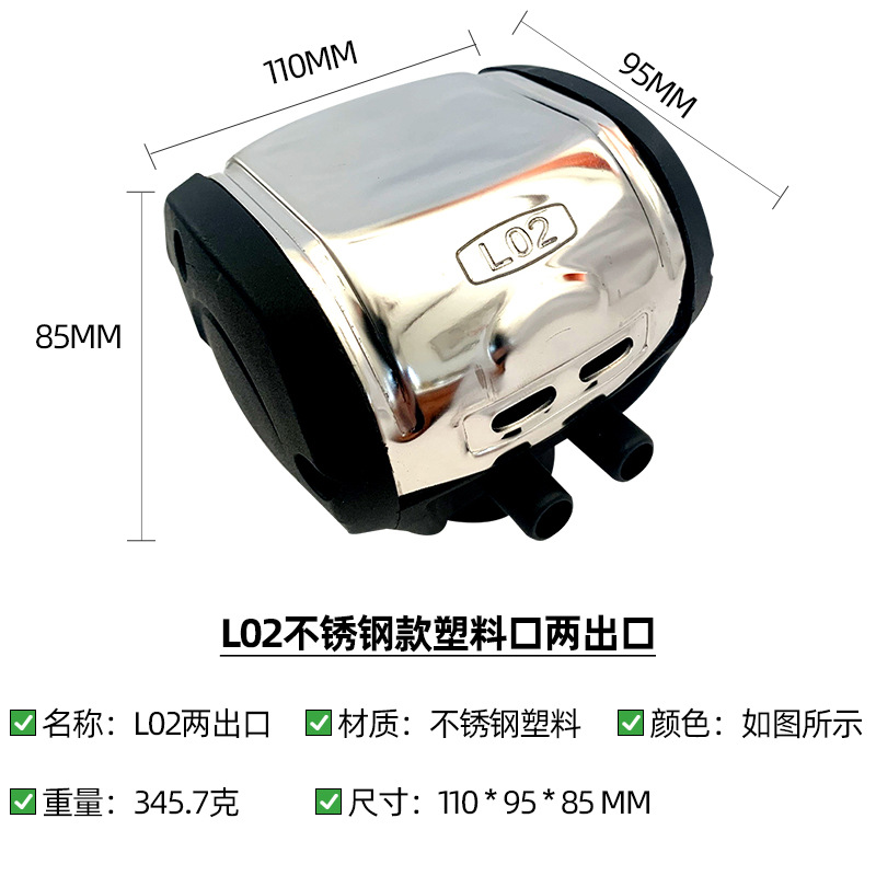 l02 stainless steel plastic port two outlet