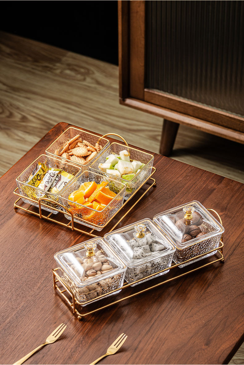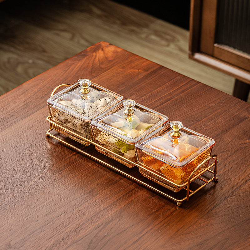 hammered pattern glass golden edge three grids + gold shelf + lid