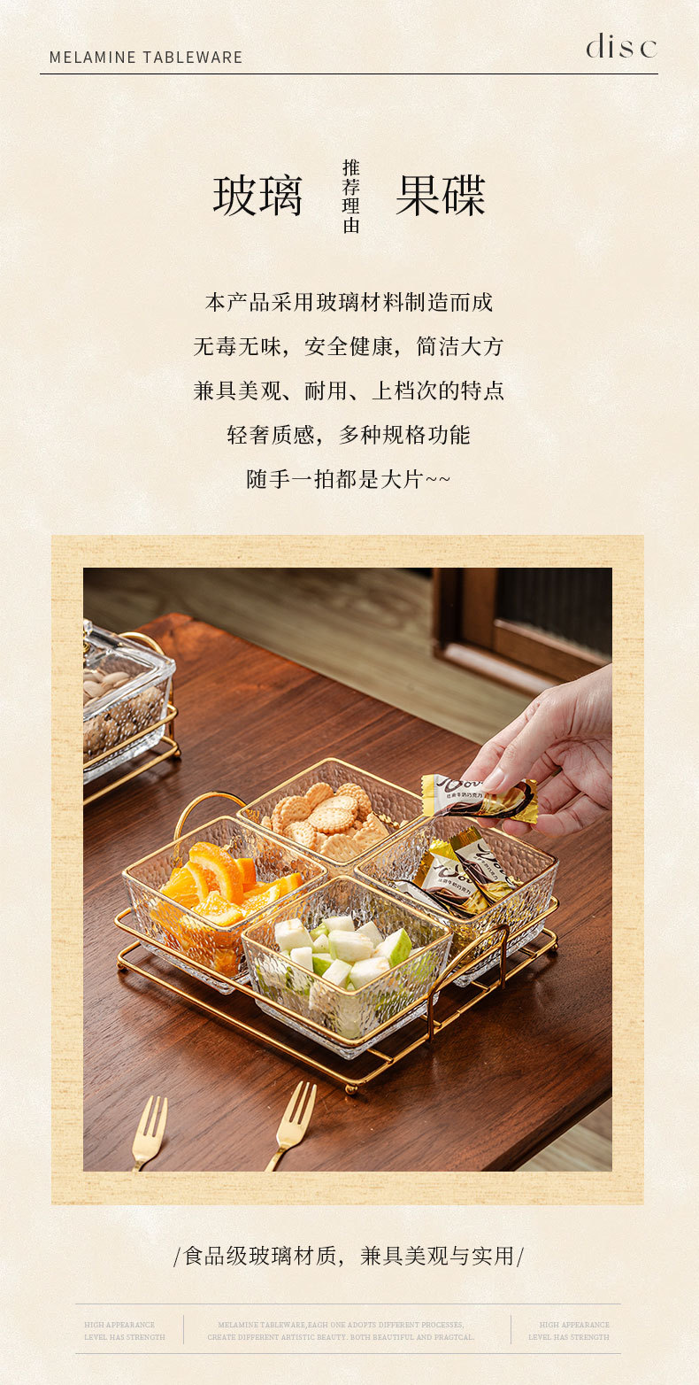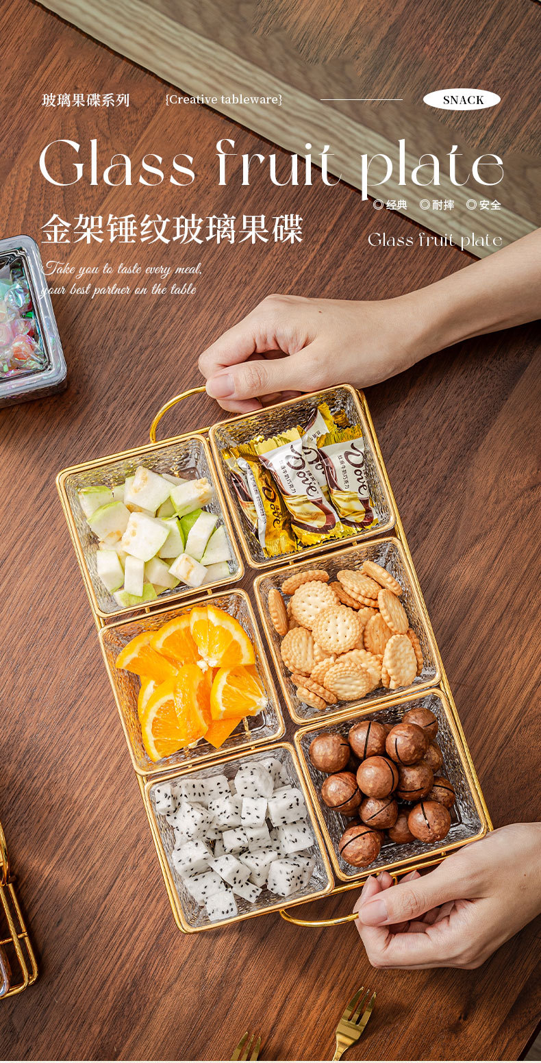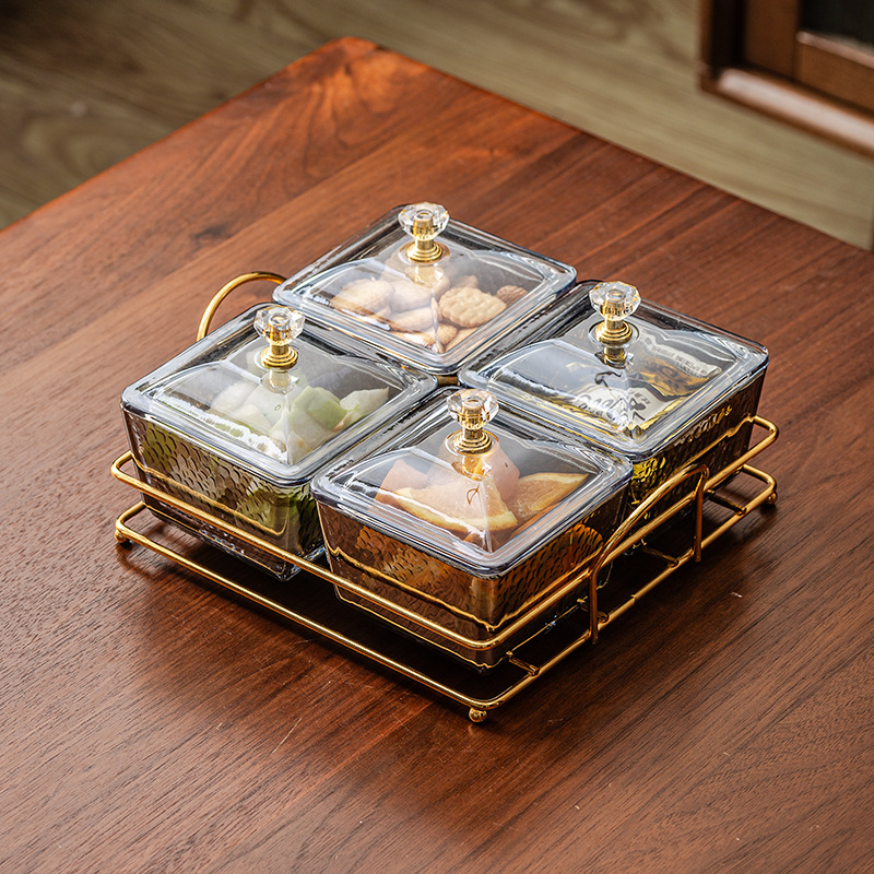 hammered pattern glass golden edge four grids + gold shelf + lid