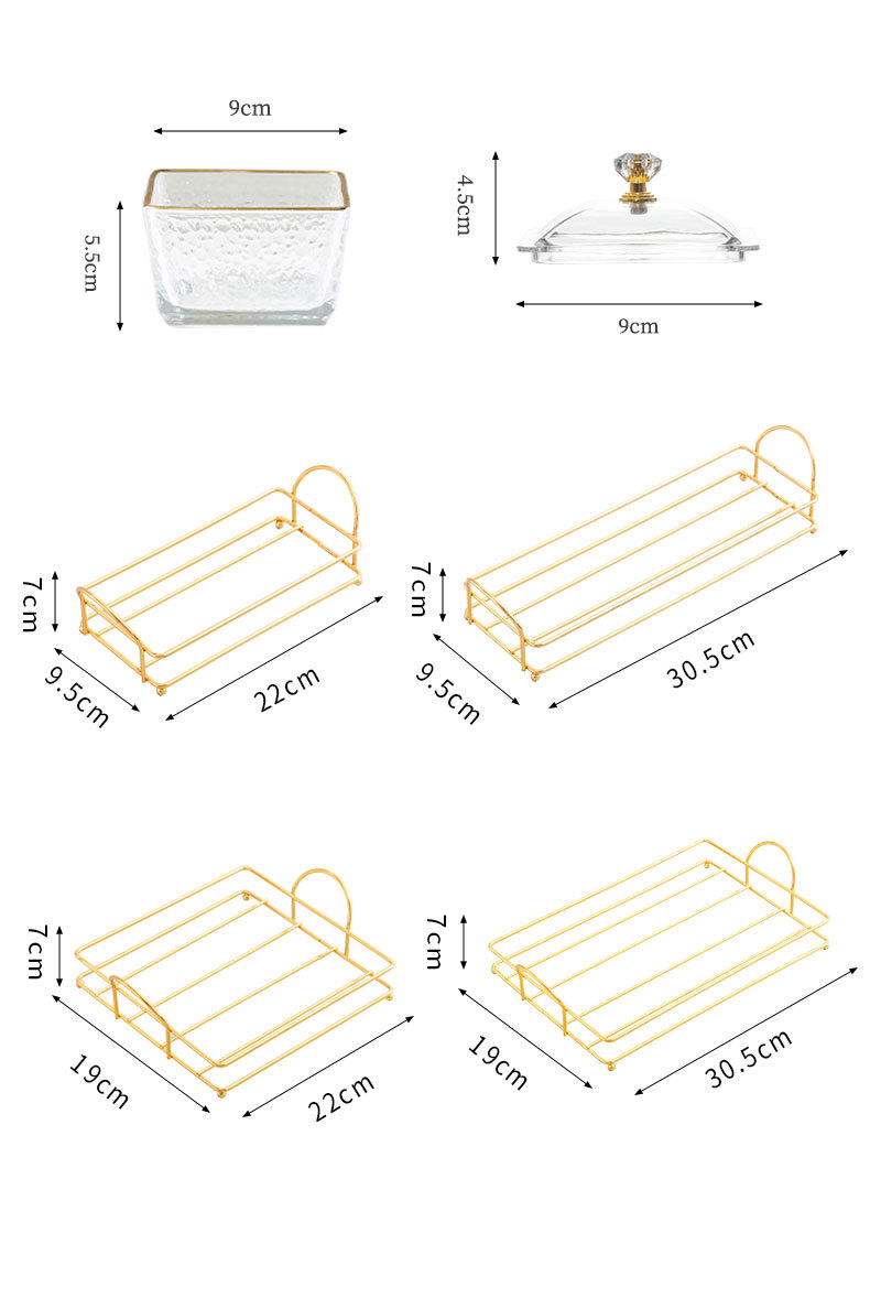 hammered pattern glass golden edge six grid + gold shelf + lid