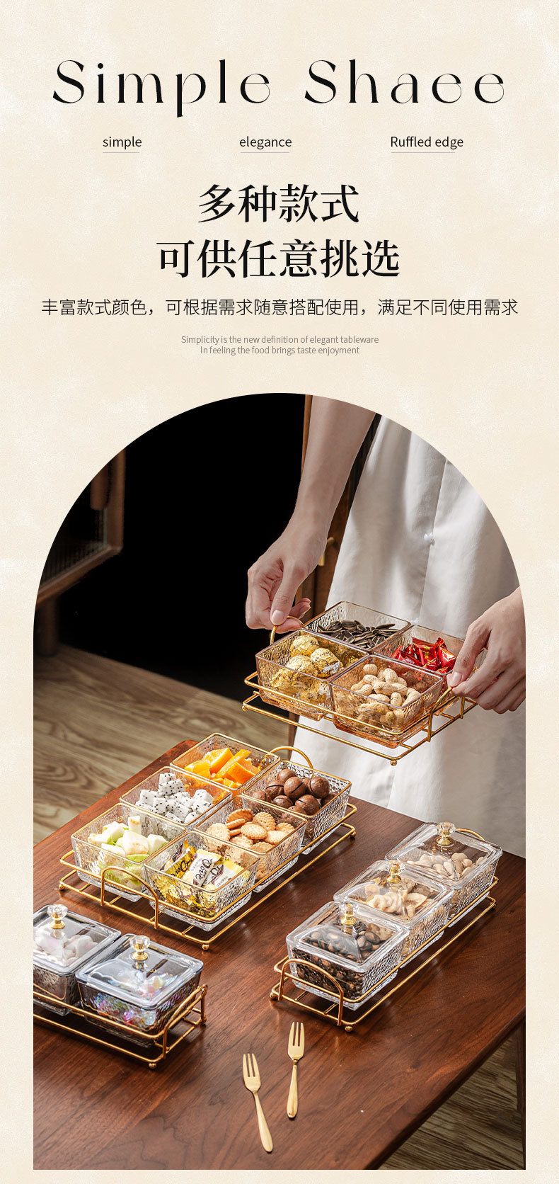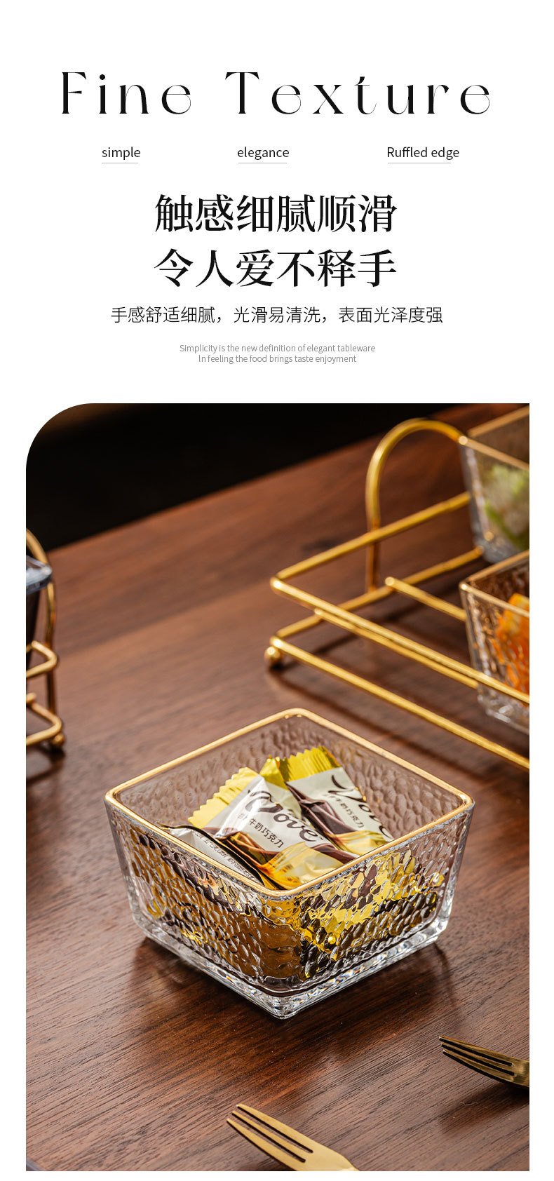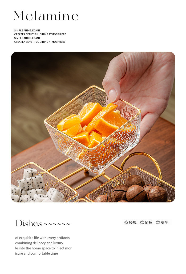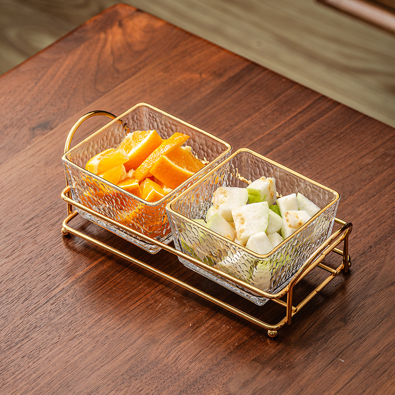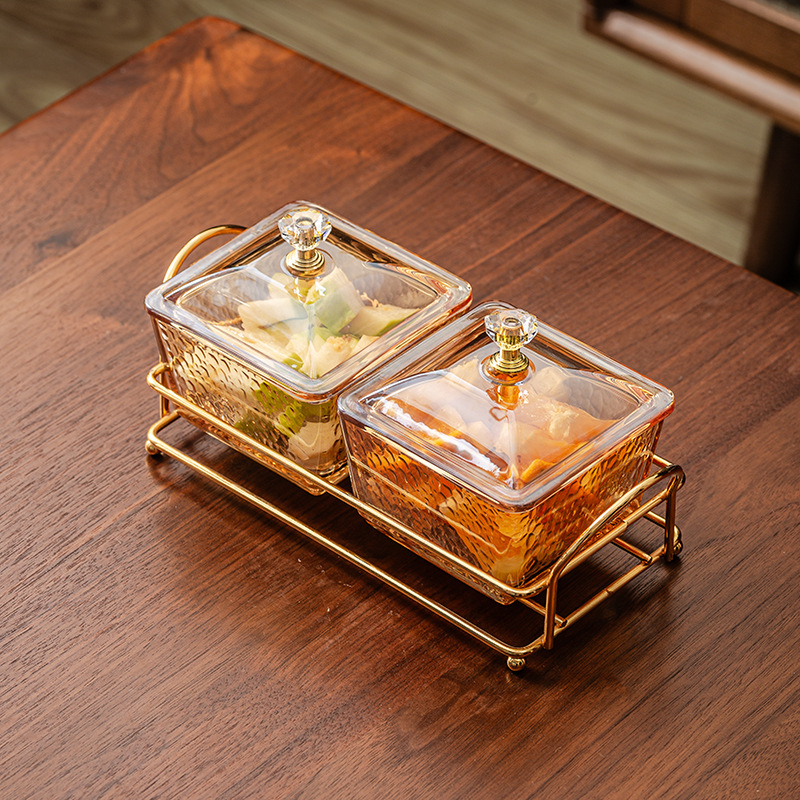 hammered pattern glass golden edge two grids + gold shelf + lid