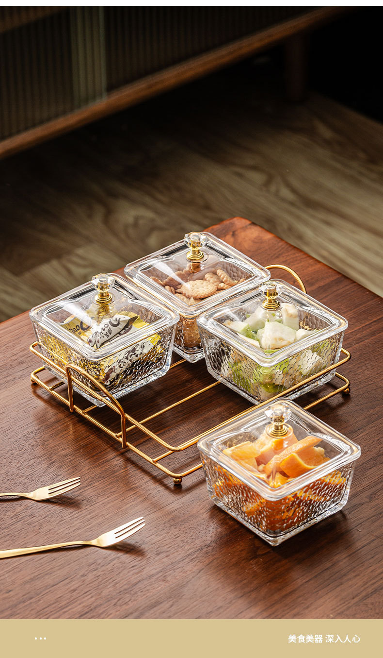 hammered pattern glass transparent four-grid + gold shelf + lid