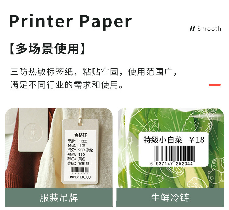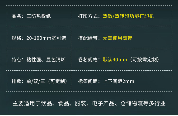 heavy thickening three-proof thermosensitive paper; horizontal version 60mm * 40mm * 800 pieces * 2 volumes