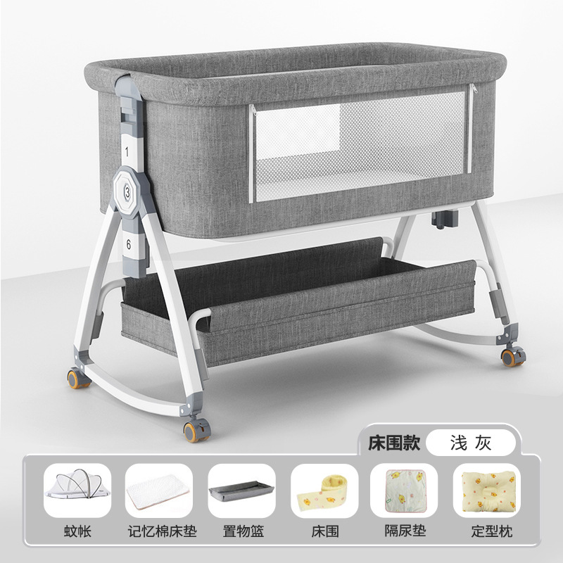 morandi gray + mattress + storage basket + mosquito net + baby caring table + bed surrounding a