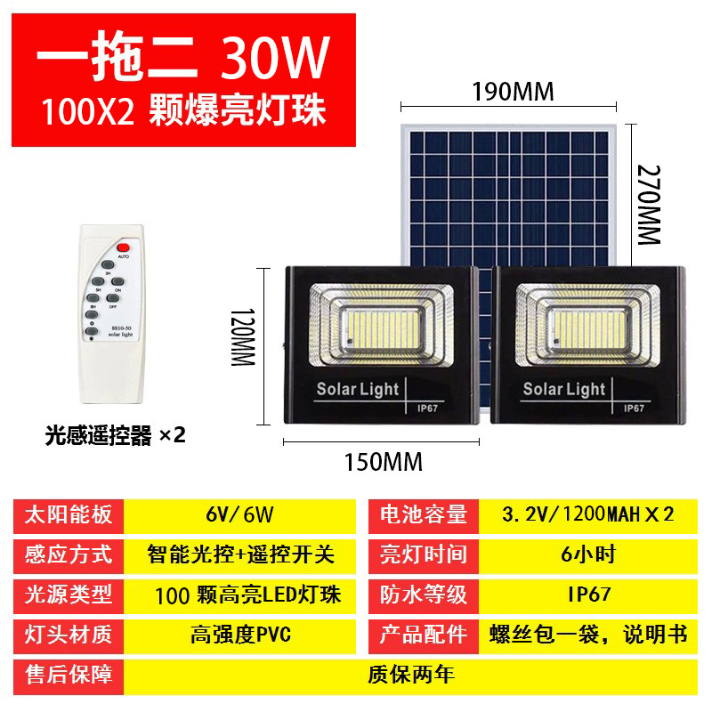 one for two 30w [100 bright lamp beads] + remote control + light control + timing