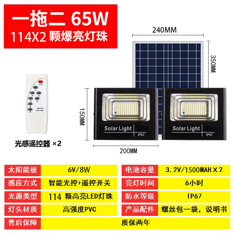 one for two 65w [114 bright lamp beads] + remote control + light control + timing