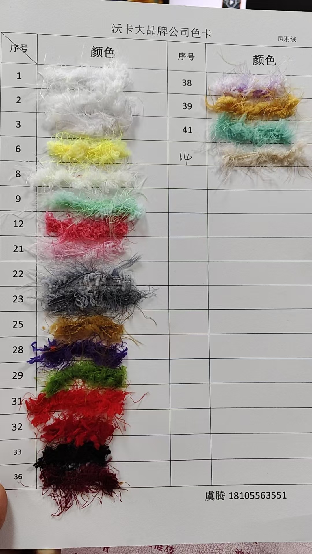 optional color note color number