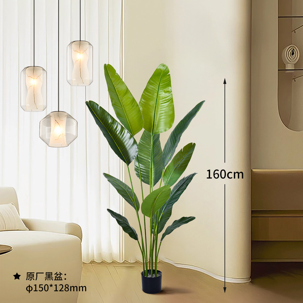 150cm high simulation spring banana tree double rod [with black plastic basin]]
