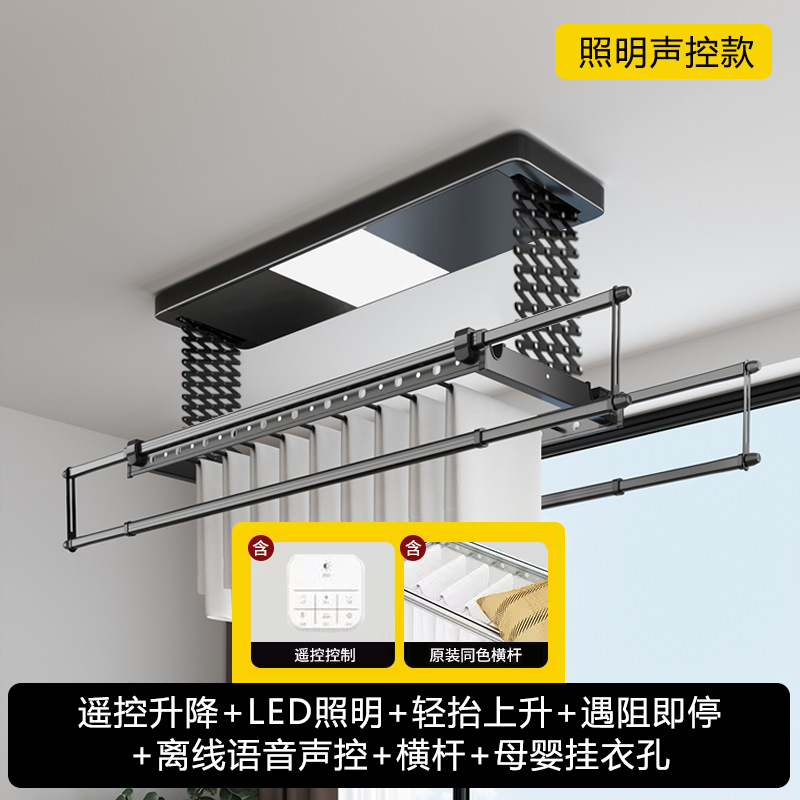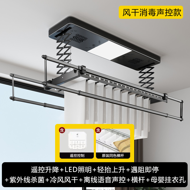 black-upgrade double row-wireless wall control + drying air drying sterilization + lighting + cross bar + stop when blocked + light lift-self-installation