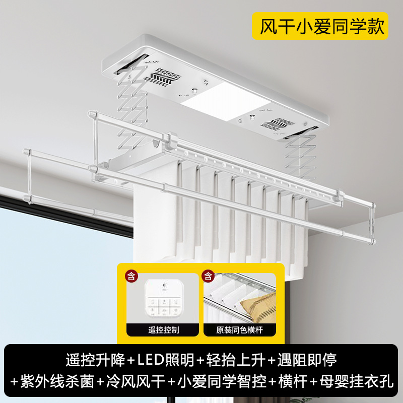 white-upgrade double row-wireless wall control + drying air drying sterilization + lighting + cross bar + stop when blocked + light lift-self-installation