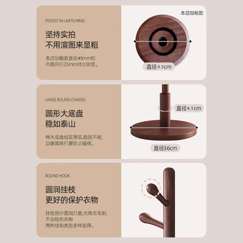 [imported beech] wood color-three legs-round 8 hooks