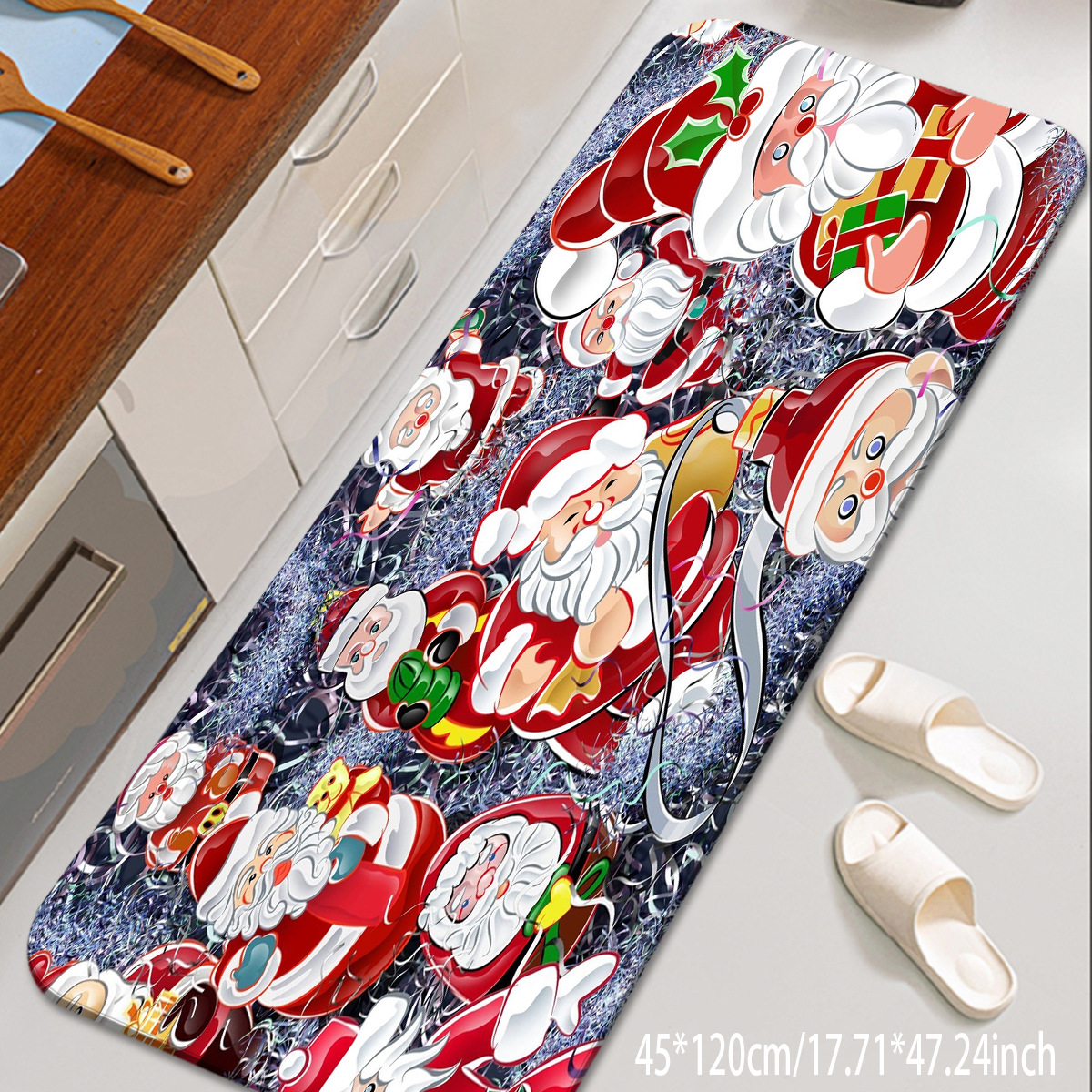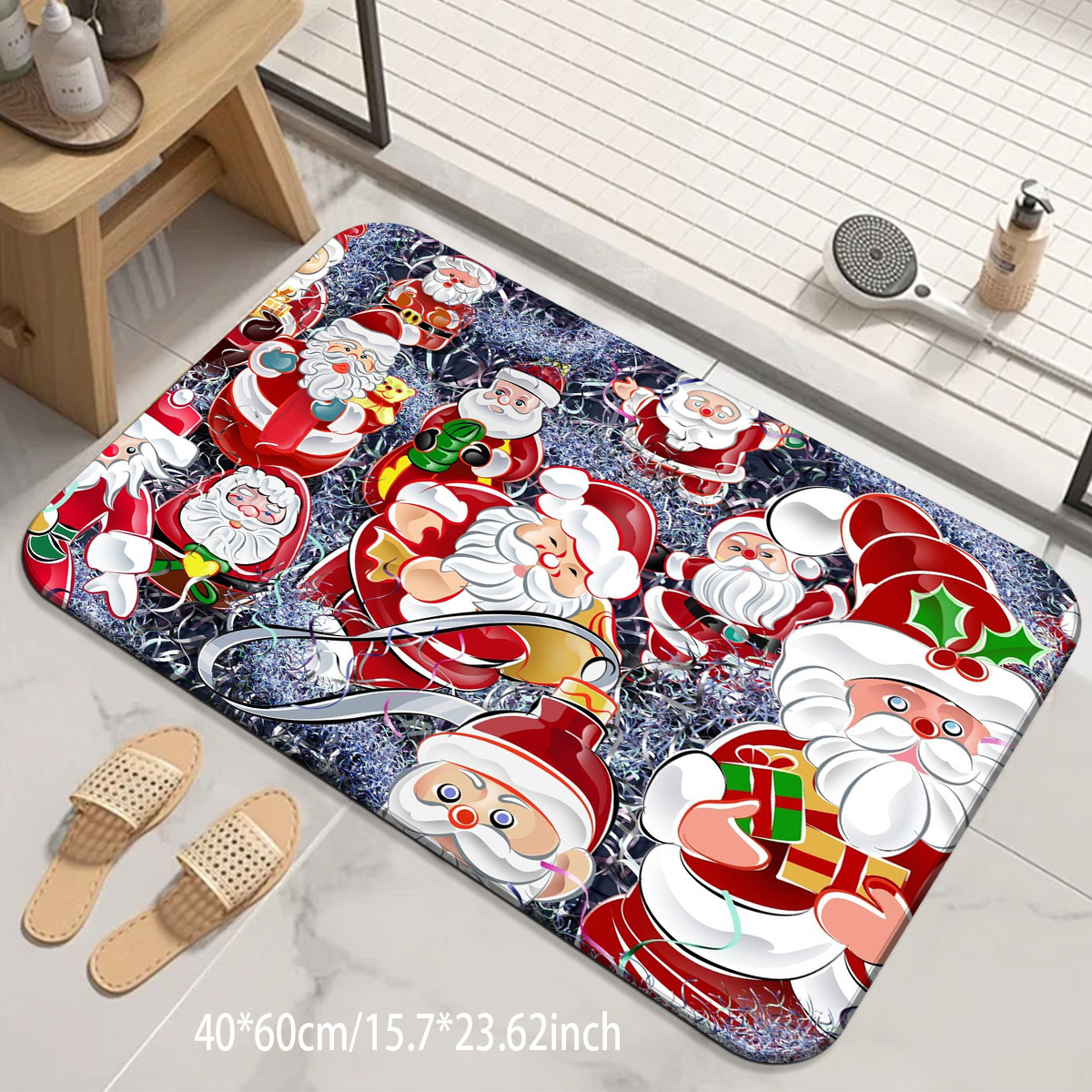 santa claus crystal velvet floor mat kitchen pad mat non-slip mat