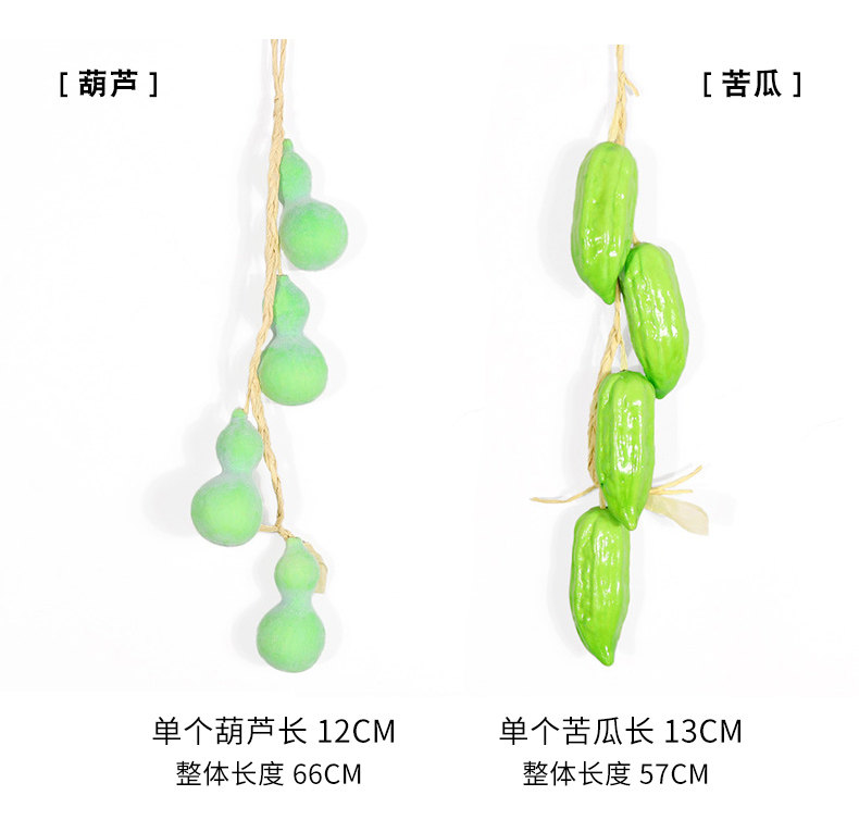 a string of dark green gourd with leaves