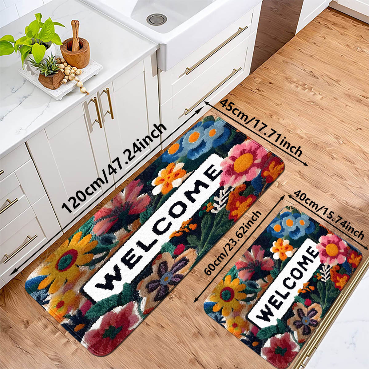 small flower flannel floor mat non-slip mat foot pad kitchen pad