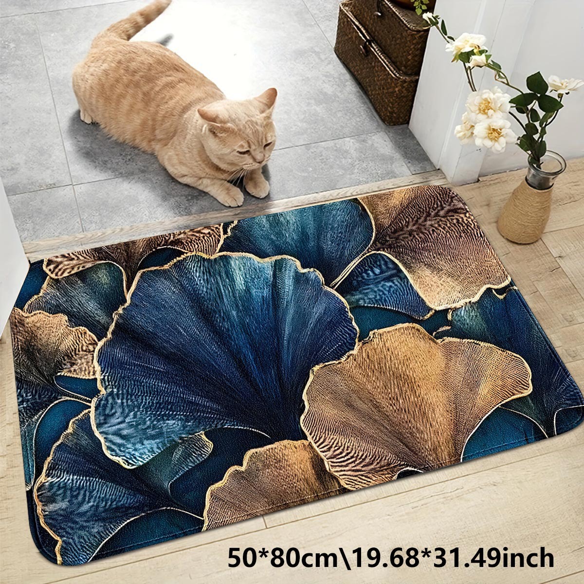 dark green leaf flannel floor mat door mat kitchen pad mat non-slip mat