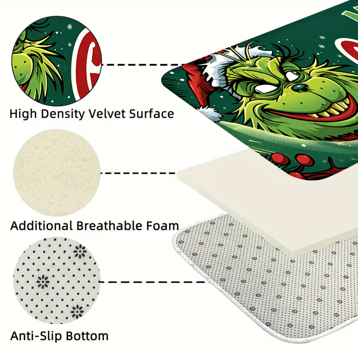 green fur monster flannel carpet mats non-slip mat kitchen pad